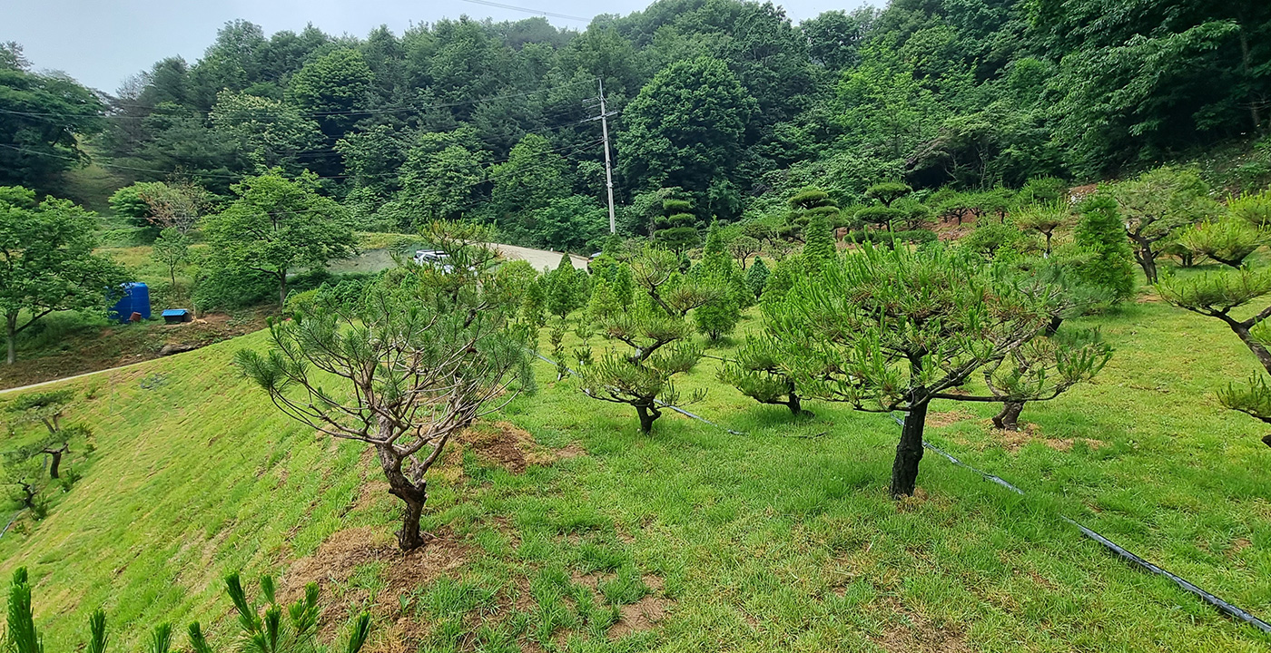 여기에 수목은 분재 소나무 小, 코니카小, 측백小, 외대 반송小, 에로우小, 문 그로우, 금송大, 코니카大, 조형소나무로 식재해 개인이나 가족의 선호도에 따라 선택합니다.